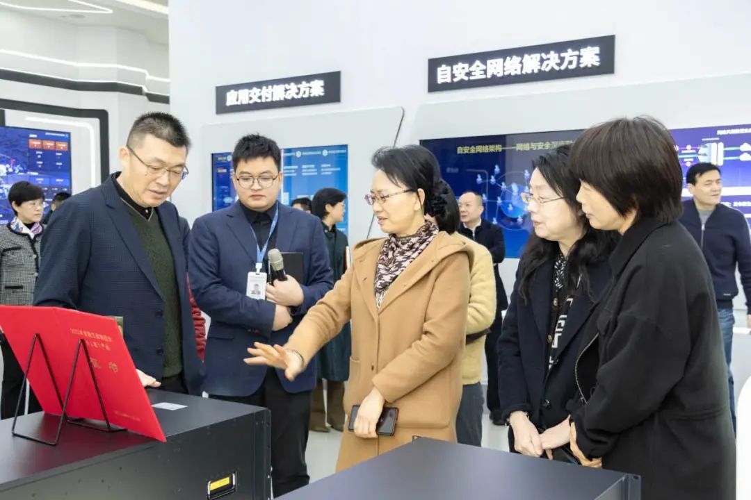 调研团一行参观了迪普科技解决方案体验中心,听取迪普科技企业发展及产品方案汇报,深入了解迪普科技在网络安全领域的创新技术成果与产品应用实践。罗卫红副主任对迪普科技长期深耕网络安全领域,坚持自主创新和对研发保持高投入表示赞赏并给予了高度评价。