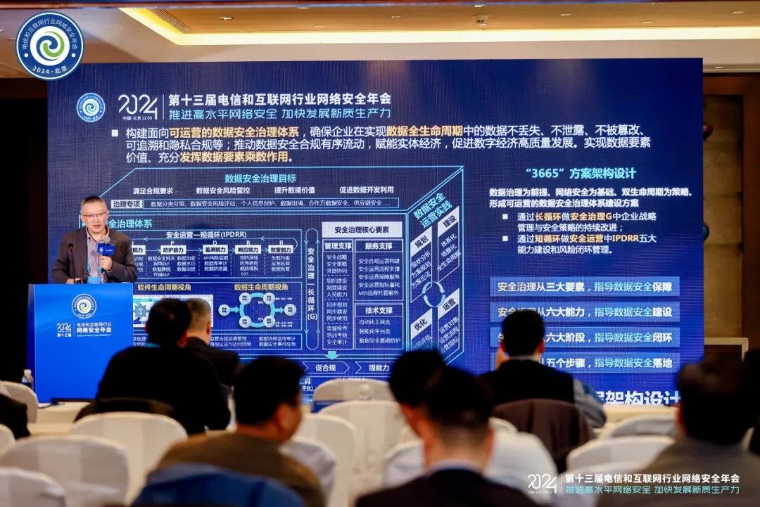 迪普科技网络安全领域专家在大会上作了《可运营的数据安全治理体系建设方案》的主题汇报。方案以数据治理为前提、网络安全为基础、双生命周期为策略,通过构建可运营的数据安全治理体系建设,为业务数据创造价值,推动企业数据安全合规有序流动,赋能实体经济,促进数字经济高质量发展,实现数据要素价值,充分发挥数据要素乘数作用。