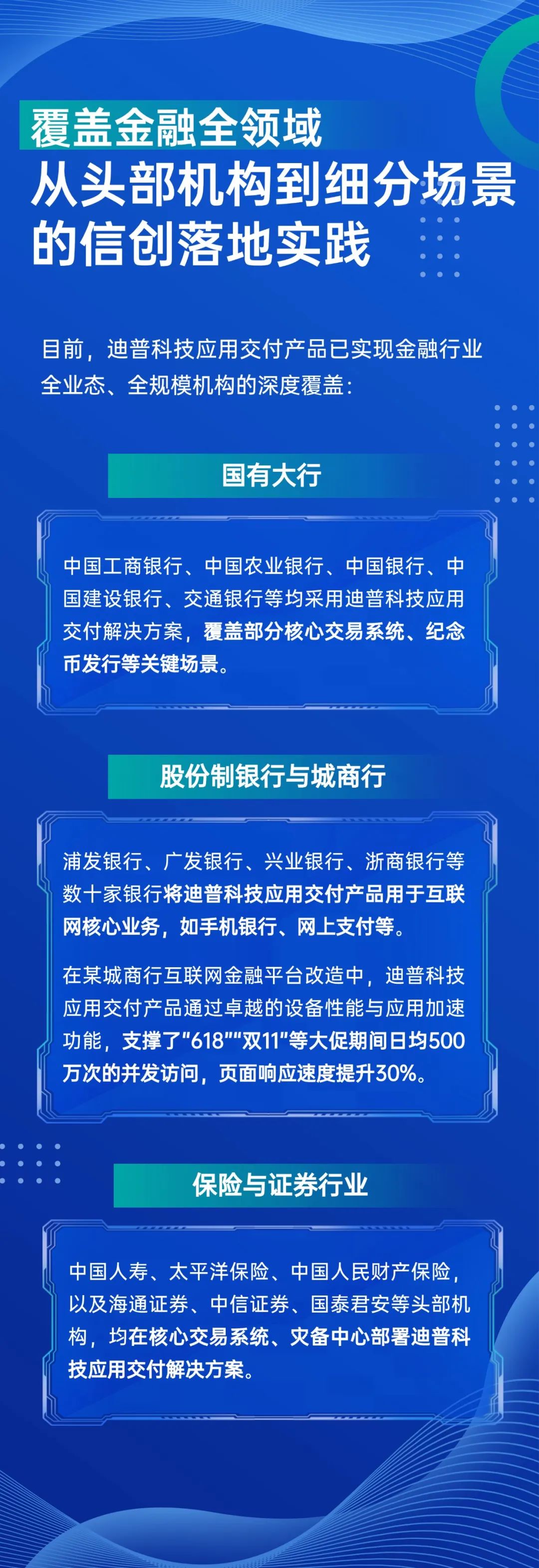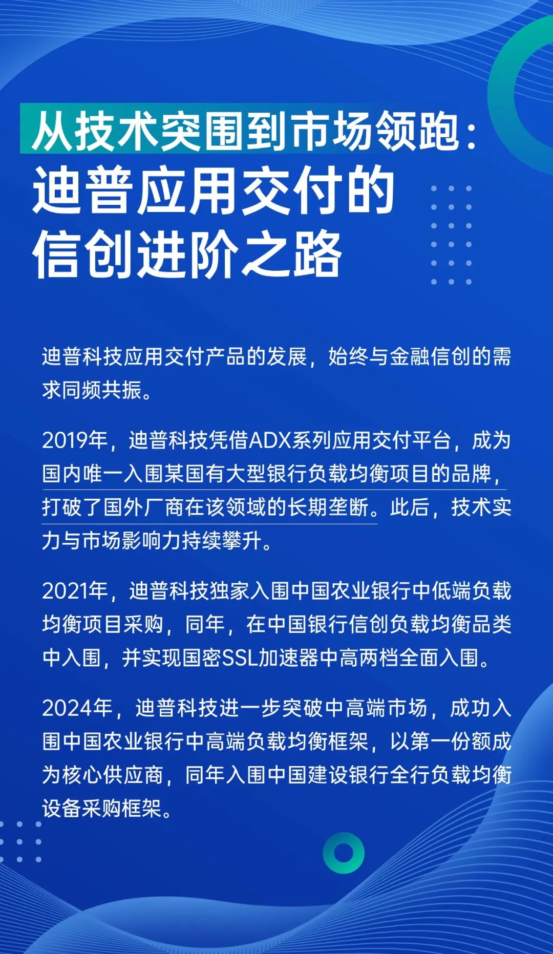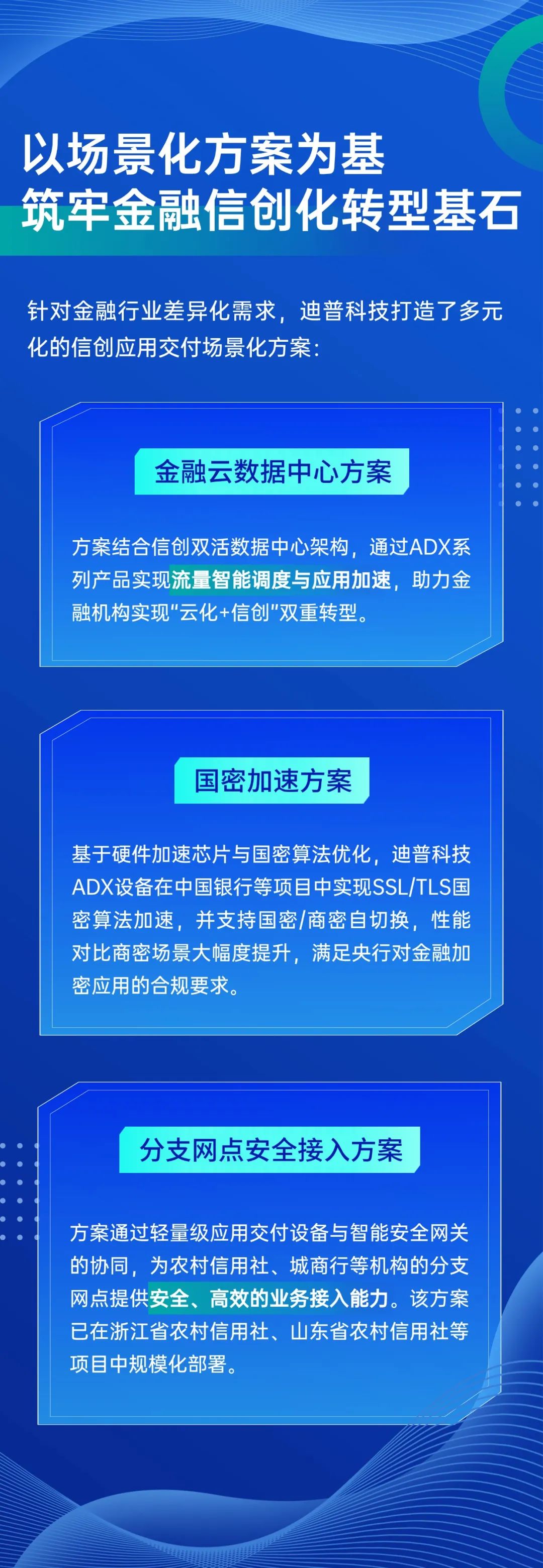 在金融行业信创化转型浪潮中,应用交付作为关键基础设施,其自主可控与性能升级成为行业核心诉求。迪普科技凭借持续的技术创新与场景化落地能力,不仅实现了应用交付产品的国产化突破,更以广泛的行业覆盖度成为金融信创化转型的重要推动者。
