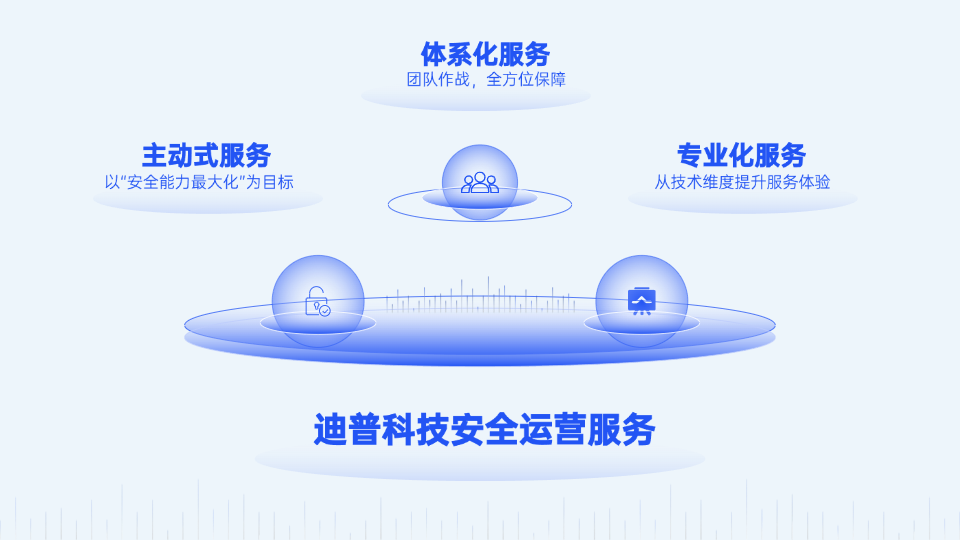 迪普科技安全运营服务以实现安全能力最大化交付为最终目标,参照国家和金融行业标准规范,构建“一支队伍+一套流程”的服务运作模式,通过组建一支由一线驻场运营、二线总部指导、三线安全研究的三级梯队组成的专业安全服务团队,按一套标准化的安全运营服务规范,围绕用户业务活动场景,对用户安全需求进行统筹规划,构建起整体联动、主动积极的安全防御体系,实现全链路安全管理闭环。