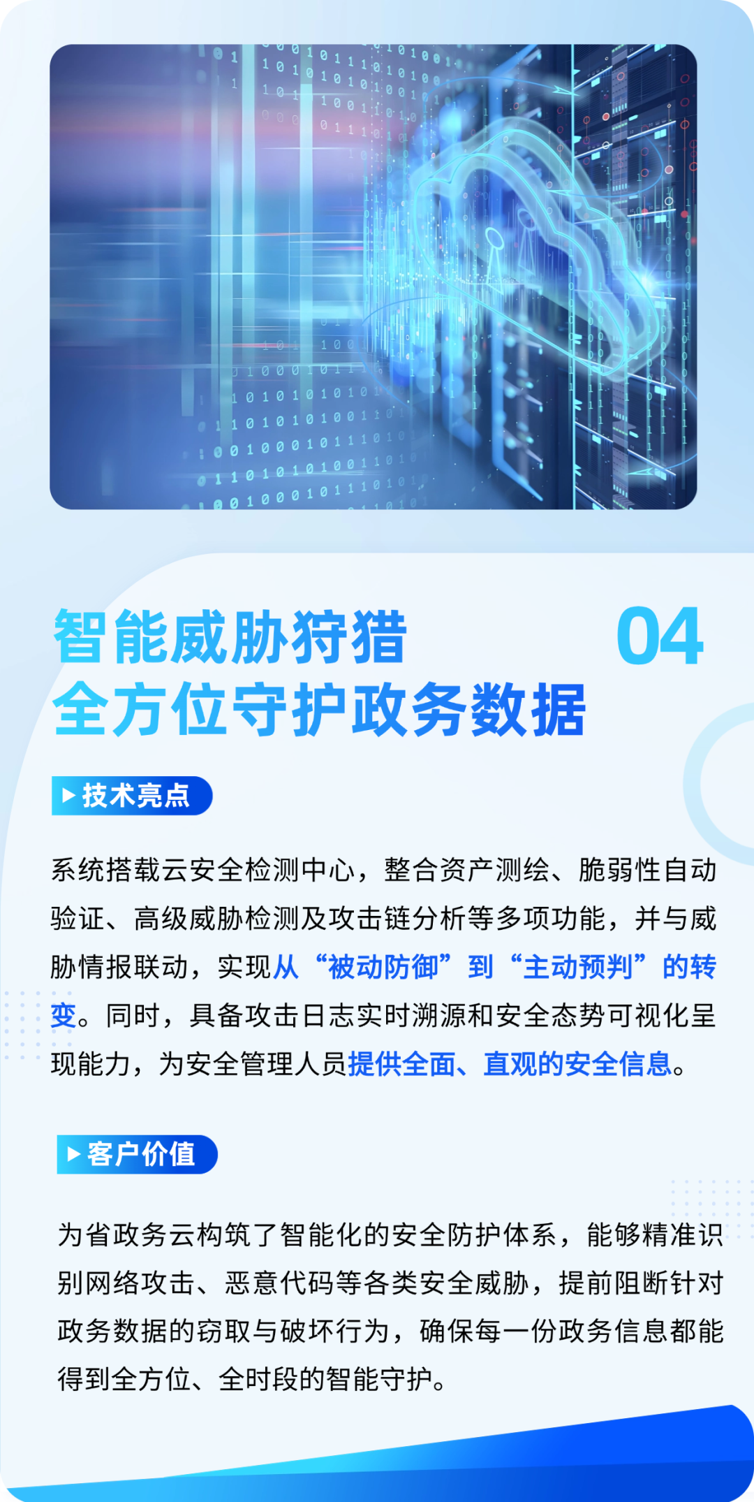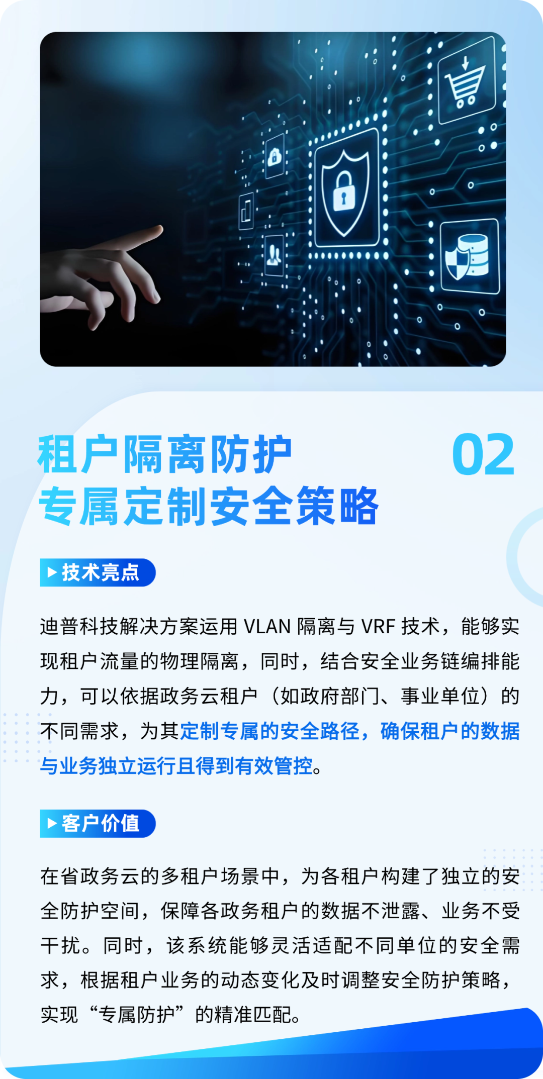 未来,迪普科技坚持以用户需求为导向,紧密围绕信创产业发展趋势,持续进行技术创新,并通过引入前沿大模型提升安全运营能力,为政务云应对新型安全威胁提供前瞻性解决方案,加速向更加安全、高效、智能的方向稳步迈进,为数字中国建设贡献具有示范意义的实践。