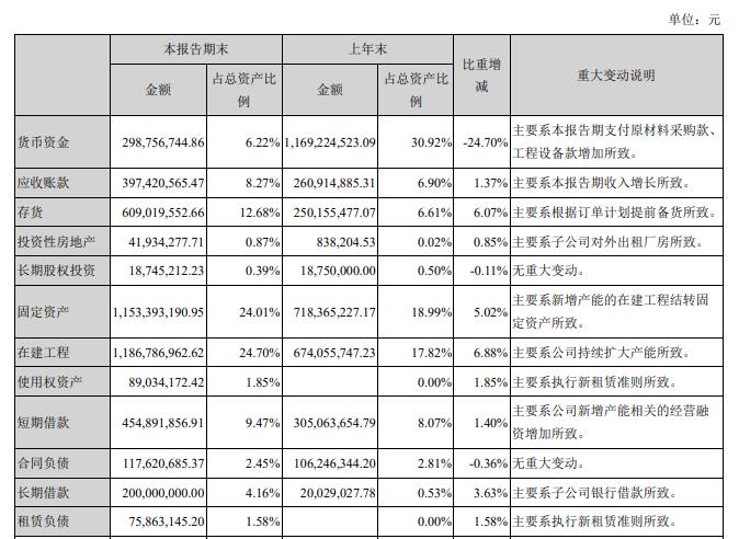8月28日,德方纳米发布2021年半年度报告。其中,货币资金报告期末余额为2.99亿元,期初数额为11.69亿元,减少了74.45%;短期借款期末余额为4.55亿元,期初数额为3.05亿元,增加了49.11%。德方纳米表示,货币资金减少主要系报告期支付原材料采购款、工程设备款增加所致;短期借款增加主要系公司新增产能相关的经营融资增加所致。