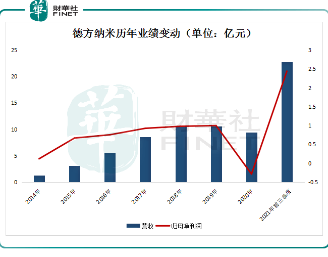 从业绩表现来看,近几年,德方纳米业绩起伏不定。2018年-2020年,该公司实现营业收入分别是10.54亿元、10.54亿元、9.42亿元,归母净利润分别是9811.62万元、1亿元、-2840.16万元。