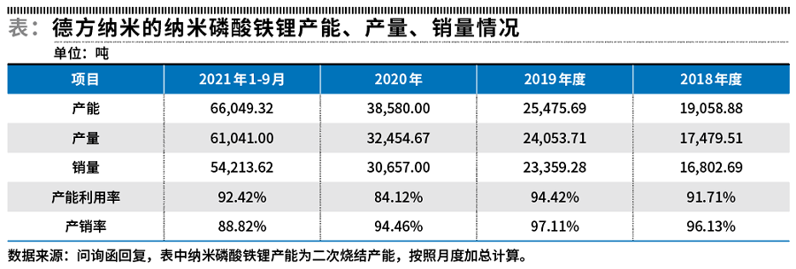 德方纳米的主要生产基地在广东省佛山市和云南省曲靖市。截至2021年6月末,公司已建设完成纳米磷酸铁锂产能(不含在建项目和规划产能)约12万吨/年。目前,德方纳米的正极材料在建及拟建产能为62万吨,产能主要布局在原材料资源丰富及电力成本较低云南曲靖和四川宜宾等地。
