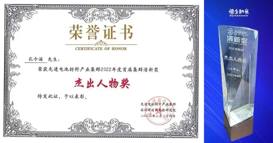德方纳米董事长、总经理、教授级高级工程师孔令涌,被授予“清新杰出人物奖”