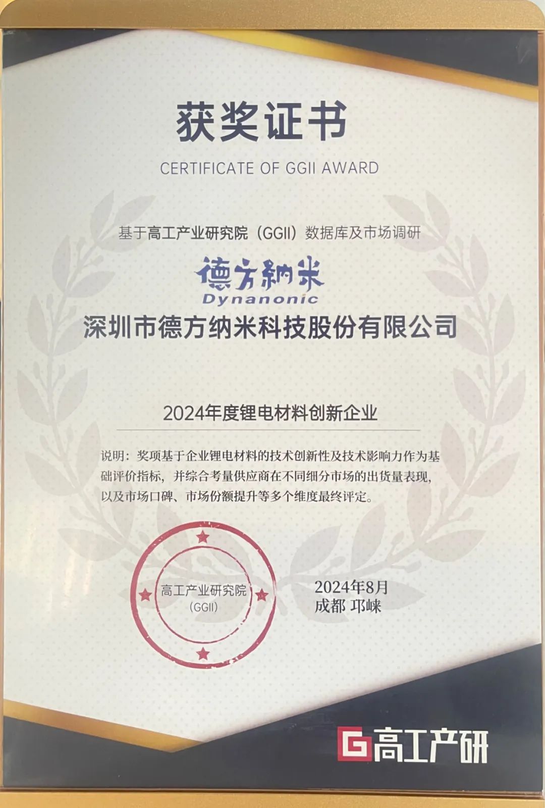 2024年度锂电材料创新企业基于企业锂电材料的技术创新性及技术影响力作为基础评价指标,并综合考量其在不同细分市场中的出货表现,以及市场口碑、市场份额提升等多个维度最终评定。高工产业研究院本次授予德方纳米该奖项,主要表彰公司近年来开发推出的以INFINILi?至锂?补锂增强剂为代表的锂电新材料产品。