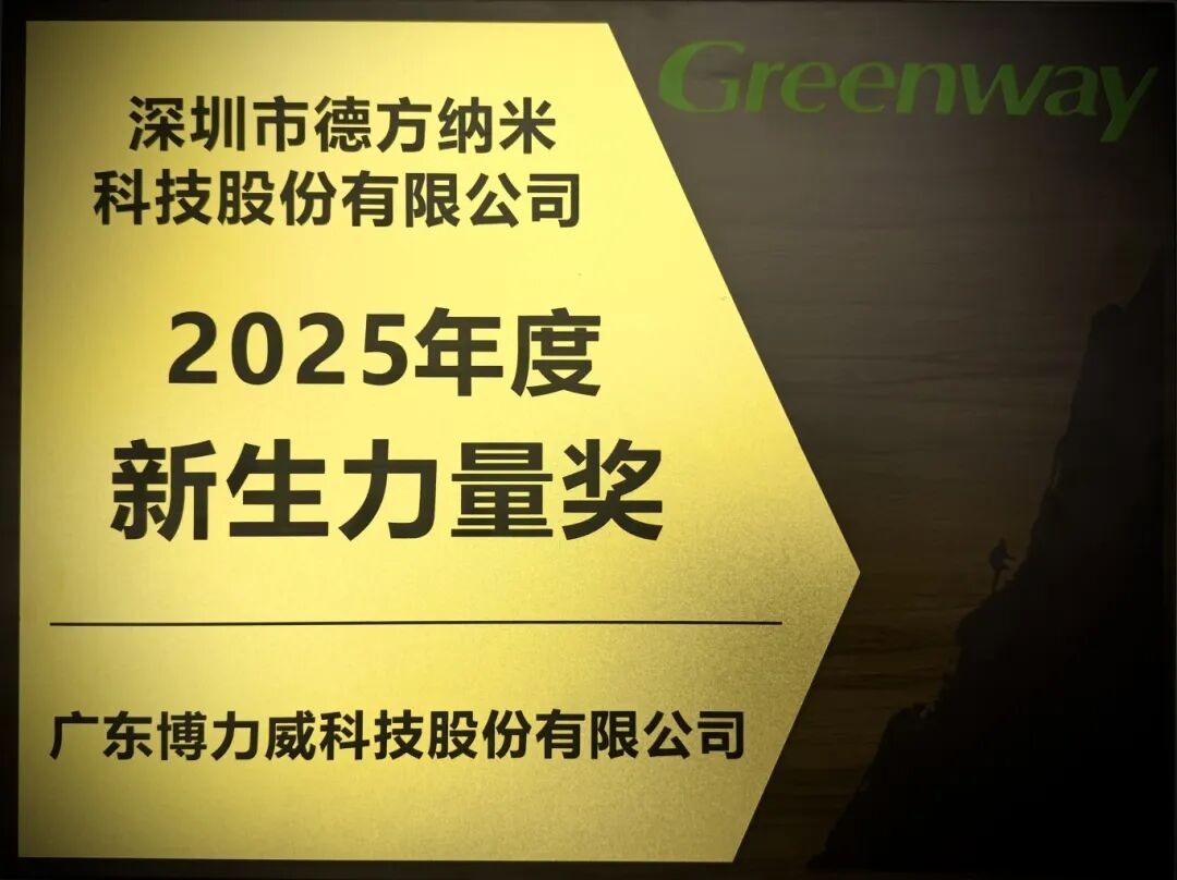 近日,深圳市德方纳米科技股份有限公司(下称“德方纳米”)荣获广东博力威科技股份有限公司(下称“博力威”)授予的2025年度新生力量奖。