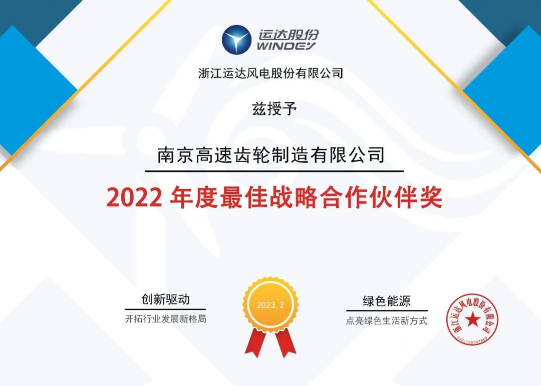 2022年,南高齿为运达股份研发新机型共计17个,达到了历史新高度,荣获运达股份“最佳战略合作伙伴奖”。“这些成就都是我们双方长期鼎力合作的有力证明”,南高齿风电事业部总经理顾晓斌表示。