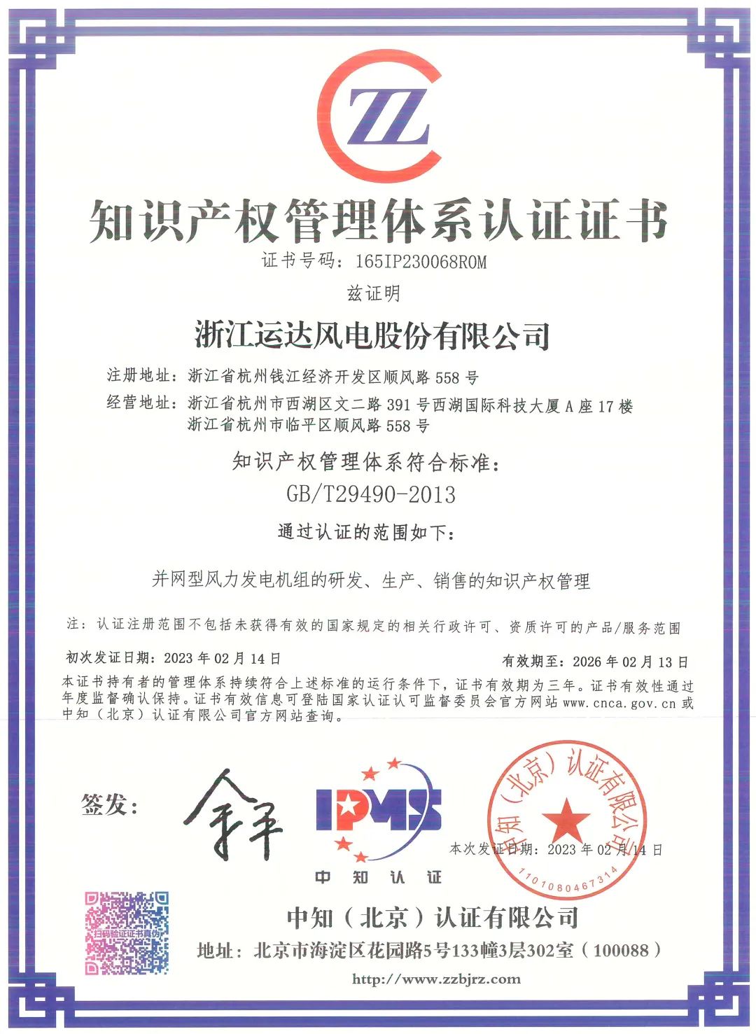 近日,运达股份顺利通过中知(北京)认证有限公司组织的知识产权管理体系认证,获得了《知识产权管理体系认证证书》,标志着公司知识产权管理体系的建立、运行和规范化管理已达到国家标准,知识产权管理能力和保护力度迈上了新台阶。