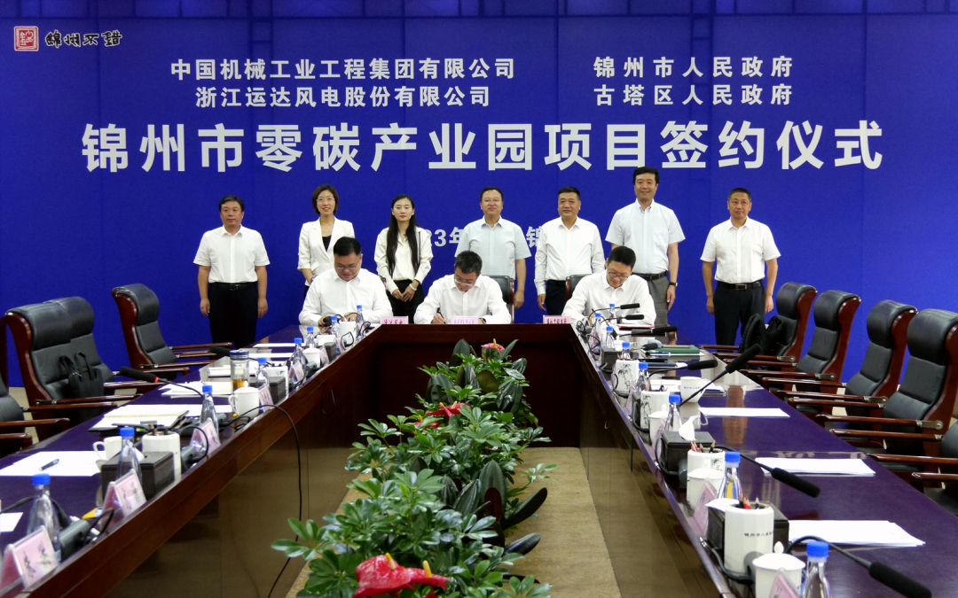 风芒能源获悉,8月24日,锦州市政府、古塔区政府与中国机械工业工程集团有限公司、浙江运达风电股份有限公司在辽宁锦州市政府举行锦州市零碳产业园项目签约仪式。