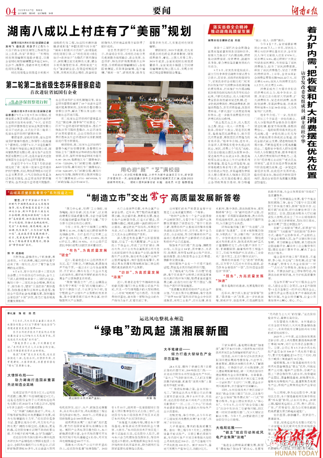 随着永州风电产业园首台大兆瓦机组的下线,运达股份迎来重要发展里程碑。《湖南日报》第4版特别刊登专题《运达风电整机永州造:“绿电”劲风起潇湘展新图》,报道运达股份挺进三湘描绘“绿电”发展新长卷。以下为报道原文: