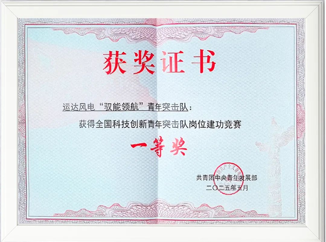 下一步,运达股份“驭能领航”青年突击队将以此次获奖为新的起点,持续激发青年人才创新活力,加速科技成果转化应用,为新能源事业发展贡献更多运达青年力量。