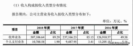 招股书显示,2018年拉卡拉营业收入达到56.79亿元,其中,收单业务的营业收入占比达89.29%,是公司营业收入的主要来源,同期个人支付业务的营收占比仅为1.9%。“随着网络支付技术的普及,在个人支付业务领域,用户习惯由线下刷卡支付逐渐变更为移动支付。”拉卡拉在招股书中坦言。受此影响,拉卡拉选择主动放弃C端个人支付业务,转向B端收单业务。