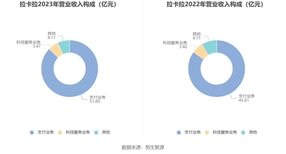 分产品看,支付业务、科技服务业务2023年毛利率分别为26.30%、71.89%。
