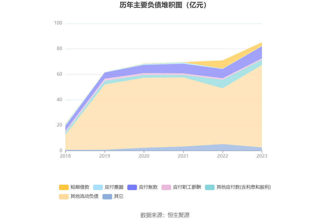 负债重大变化方面,截至2023年年末,公司其他流动负债较上年末增加47.62%,占公司总资产比重上升10.78个百分点;短期借款较上年末减少56.25%,占公司总资产比重下降3.87个百分点;其他应付款(含利息和股利)较上年末减少36.65%,占公司总资产比重下降2.91个百分点;应付账款较上年末增加30.68%,占公司总资产比重上升0.79个百分点。