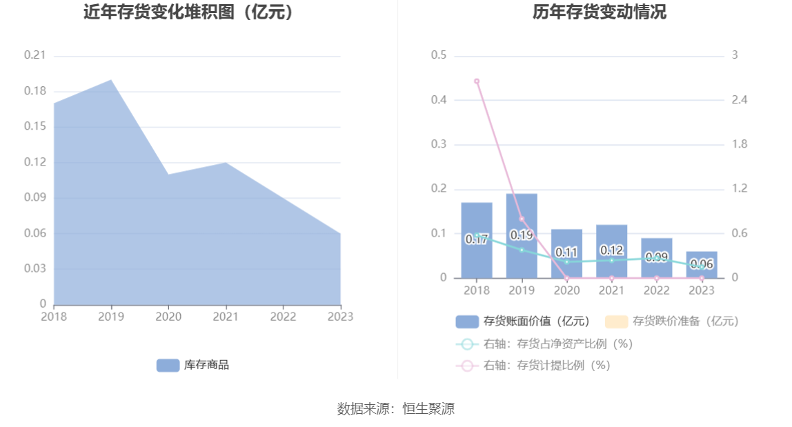 从存货变动来看,截至2023年年末,公司存货账面价值为568.52万元,占净资产的0.15%。根据财报,公司本期没有计提存货跌价准备。