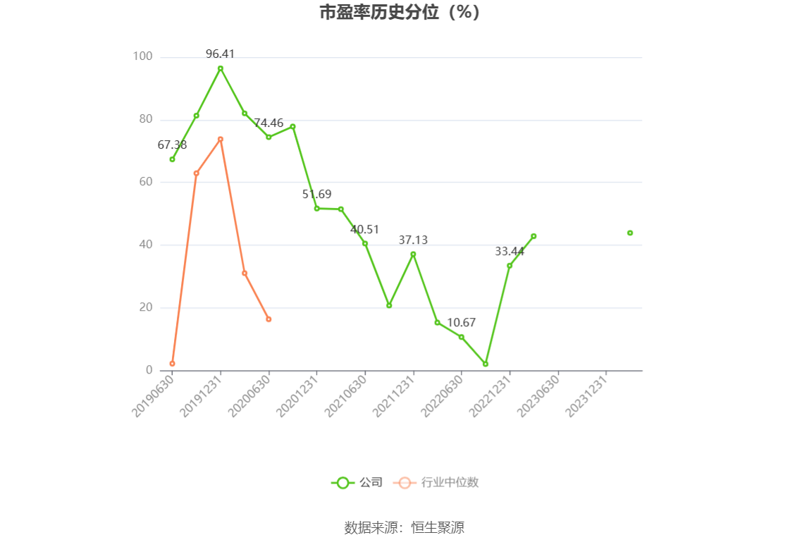 市盈率为负时,不显示当期分位数,会导致折线图中断。