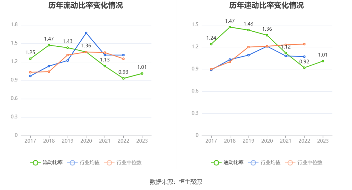2023年,公司流动比率为1.01,速动比率为1.01。