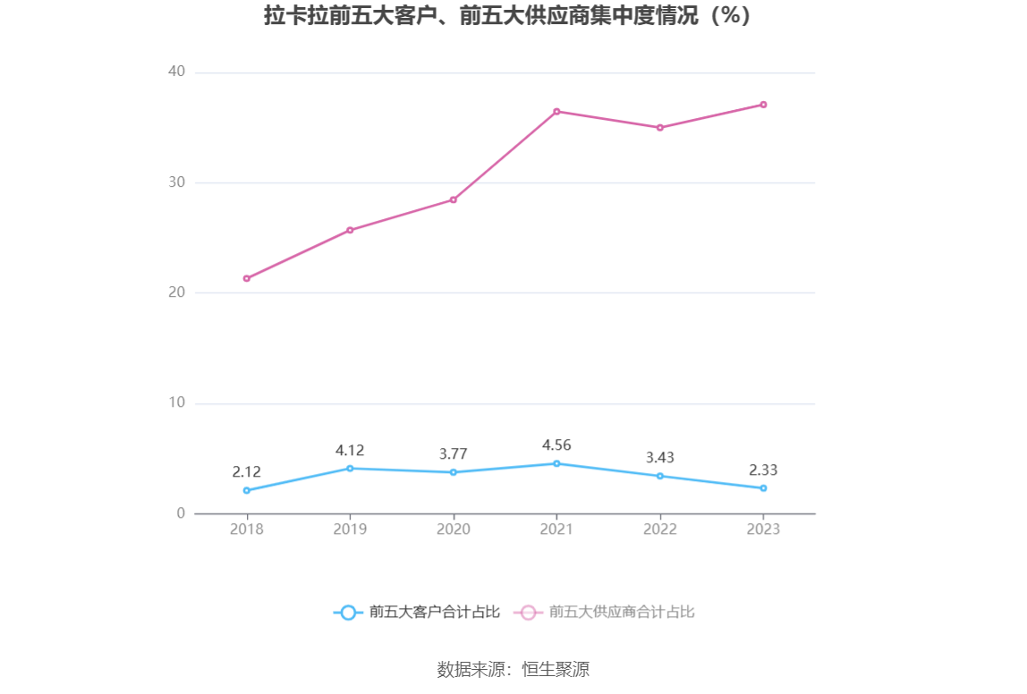 报告期内,公司前五大客户合计销售金额1.39亿元,占总销售金额比例为2.33%,公司前五名供应商合计采购金额15.77亿元,占年度采购总额比例为37.09%。