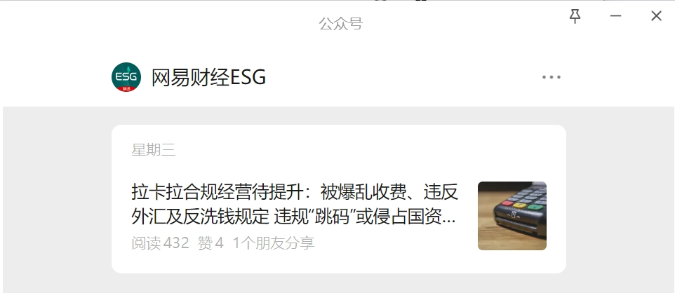 7月31日,网易财经发布文章《拉卡拉合规经营待提升:被爆乱收费、违反外汇及反洗钱规定违规“跳码”或侵占国资利益|ESG案例》指出,支付“一哥”拉卡拉又陷入乱收费的漩涡里。