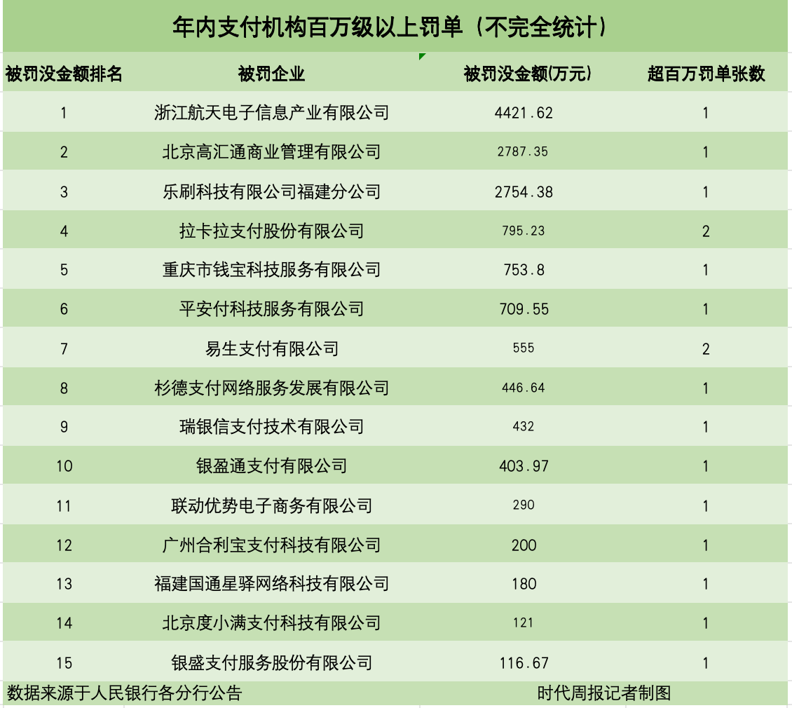 年内第三方支付公司共收到15张百万级以上罚单,总额接近1.5亿元。