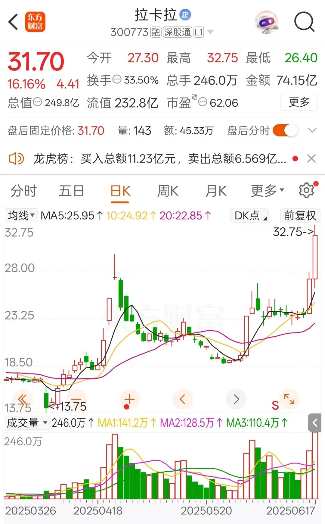 6月17日,刚刚宣布启动赴港上市的A股支付公司——拉卡拉盘中一度涨停,最终收盘涨幅16.16%,自4月年内股价低点以来至今,这家主营数字支付业务的上市公司已累计涨幅近130%。