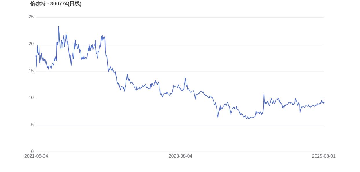 倍杰特自2021年08月04日上市至今,已迎来4周年。从上市首日收盘价为17.79元、市值72.72亿元,到如今市值达到37.32亿元。