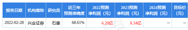数据中心根据近三年发布的研报数据计算,兴业证券(601377)石康研究员团队对该股研究较为深入,近三年预测准确度均值为68.61%,其预测2022年度归属净利润为盈利6.2亿,根据现价换算的预测PE为33.14。