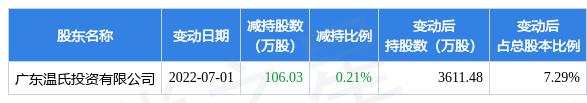 7 月 4 日三角防务发布公告《三角防务:关于持股 5%以上股东及其一致行动人减持股份计划实施完毕的公告》,其股东广东温氏投资有限公司于 2022 年 6 月 25 日至 2022 年 7 月 1 日间合计减持 106.03 万股,占公司目前总股本的 0.2139%,变动期间该股股价下跌 0.08%,截止 7 月 1 日收盘报 47.72 元。