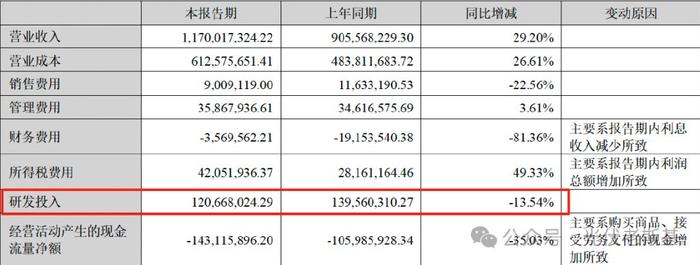 与此同时,公司的研发投入同比下降13.54%至1.21亿元。作为以技术立命的企业,研发投入的收缩不仅与公司"研发是生存核心"的战略定位相悖,更可能动摇其长期构建的技术护城河。
