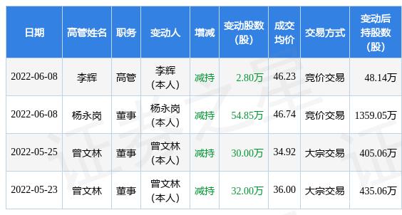 6月10日中简科技(300777)在深圳证券交易所网站披露了董监高及相关人员股份变动情况:2022年6月8日公司董事杨永岗、高管李辉共减持公司股份57.65万股,占公司总股本为0.1312%。变动期间公司股价下跌1.87%,截止6月8日收盘报46.3元。