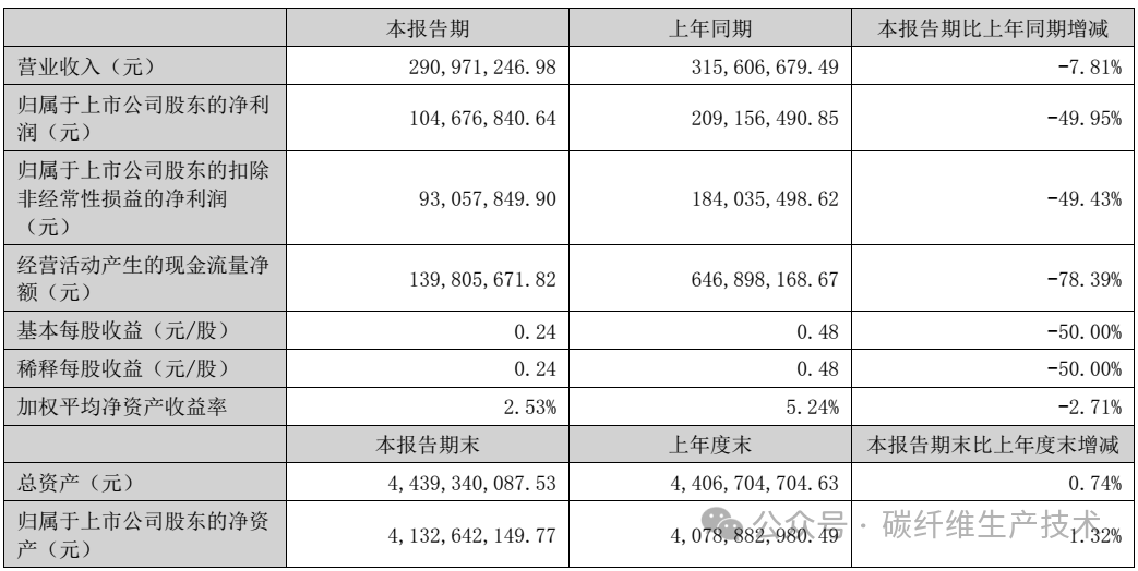 8月28日晚间发布半年度业绩报告称,2024年上半年营业收入约2.91亿元,同比减少7.81%;归属于上市公司股东的净利润约1.05亿元,同比减少49.95%。