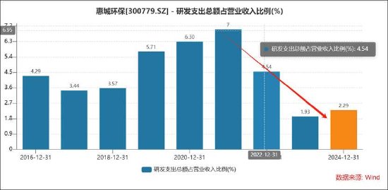 然而,公司走牛的股价与基本面似乎背离。2025年半年报显示,公司营收开始下滑,净利润暴跌。数据显示,今年上半年,惠城环保实现营业收入5.64亿元,同比下降5.09%;归属于母公司股东净利润502.04万元,大幅下降85.63%。