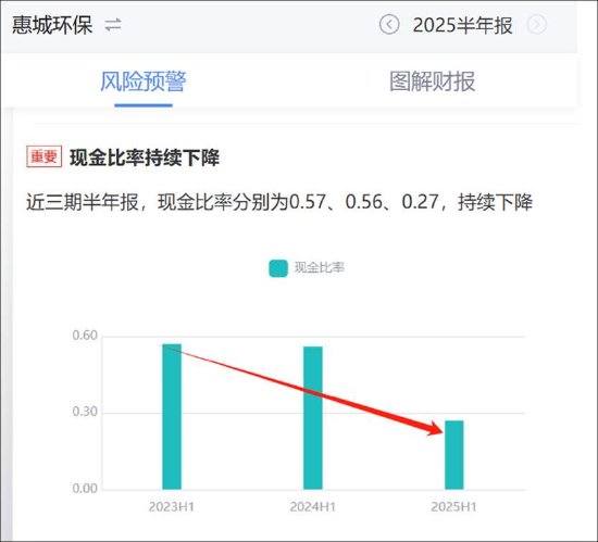 鹰眼预警系统数据也进一步验证了公司资金链紧张。公司的现金比率持续下滑,2025年上半年末,其现金比率仅为0.27。截止2025年半年报末,公司的有息债务规模为30亿左右,其中短期债务为6.98亿元,而账面现金仅剩4.42亿元。在如此资金缺口下,公司资金压力可想而知。