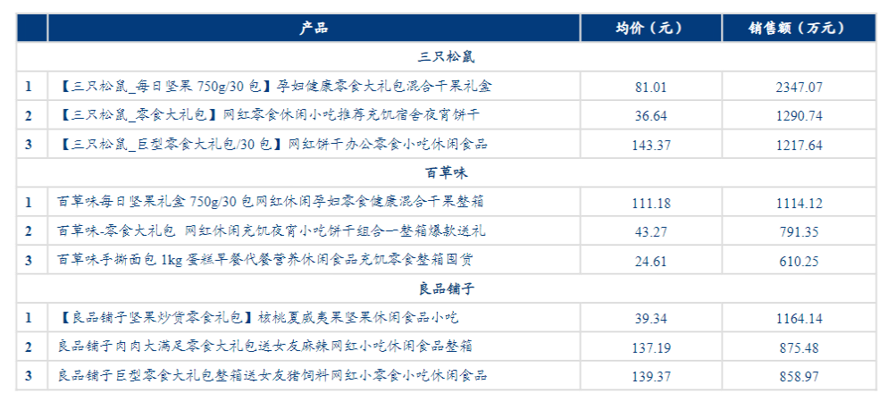 三只松鼠虽是目前头部零食企业唯一一个营收超过百亿元的企业,但这种营收来自于低价策略。以孕妇健康零食大礼包混合干果礼盒750g/30包在电商渠道售价为例,三只松鼠和百草味的价格分别81.01元和111.18元。