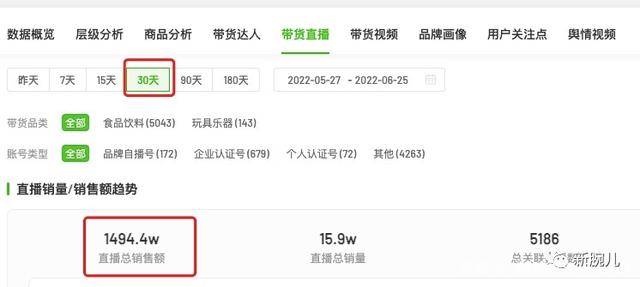眼下的三只松鼠只能内求,靠电商撑起营收大头。在最近30天,三只松鼠抖音上有1211个达人带货,其中包括7个自播号。对应实现了1494.4w销售额。每个主播每月产生1.23万销售额。也就是说,三只松鼠的主播每天抖音GMV410元。