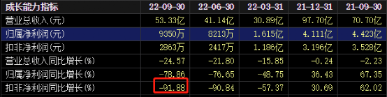 净利润方面,上市前三年及上市后三年前后6个年度,其扣除非经常性损益的净利润都只是在2亿元至3亿元出头徘徊,直到2022年出现大幅下滑。2022年的一季报、半年报、三季报,三只松鼠扣非净利润分别下滑57%、90%和92%,前三季度扣非净利润仅有2863万元。