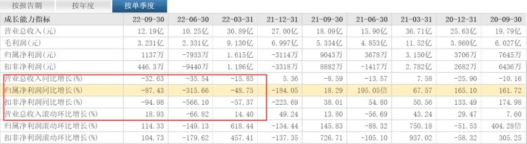利润指标降速还要猛,其中归属净利润同比增速1-3季度分别下降48.75%、315.66%、87.43%;扣非净利润同期分别下降了57.37%、566.10%、94.98%。