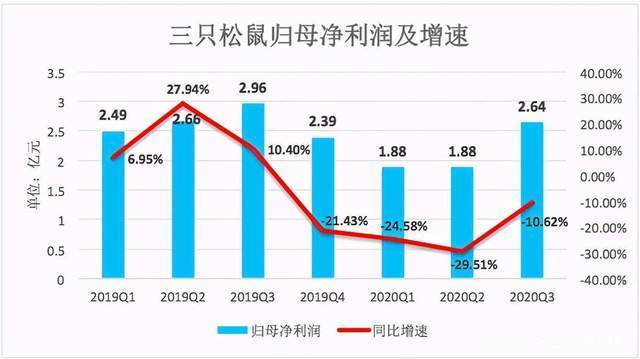 这是三只松鼠连续两年营收下滑;2021年,其归属于上市公司股东的净利润为4.11亿元,同比增长36.43%。