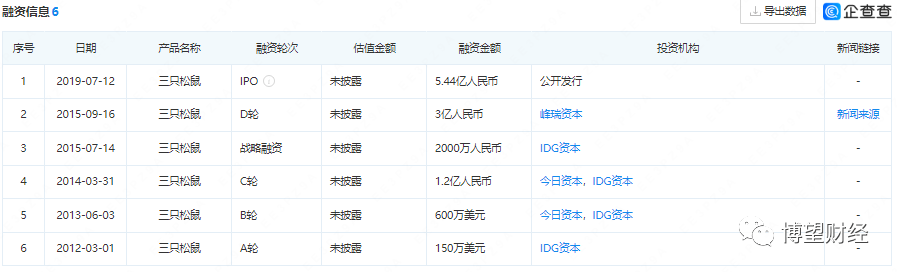 或许也正是看到了三只松鼠强劲的增长势头,国内顶级风投机构IDG资本、今日资本颇为看好,接连斩获高额融资,也在资本助力下,三只松鼠顺利于2019年7月在深交所上市,成为“国民零食第一股”。