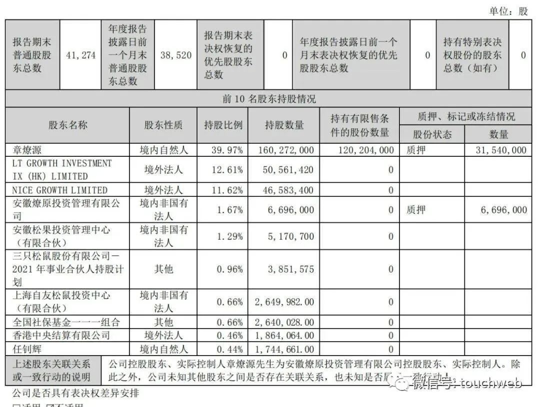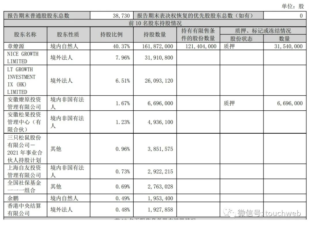 截至2022年12月31日,三只松鼠股权结构