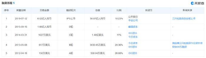 三只松鼠和徐新、IDG的故事曾被媒体广泛报道。上市前的四轮融资,IDG参与了三轮,今日资本两轮。