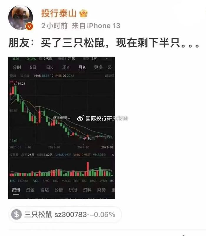 最近,二级市场有个段子火了:买了三只松鼠,现在还剩下半只。
