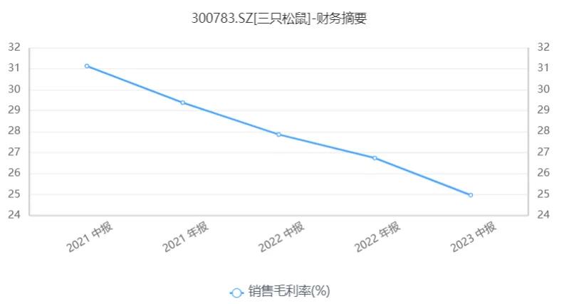 然而,这一切并没有阻止“性价比”战略对三只松鼠毛利率的影响:2021年到2023年,三只松鼠的毛利率从31%以上,下降到25%以下,降价、“走量”的得失很明显。