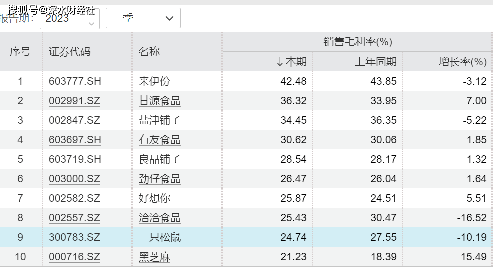 但是也要看到,三只松鼠的毛利率在休闲零食类上市公司仍然是几乎垫底的水平,公司直接的竞争对手良品铺子去年前三季毛利率达到28.54%,洽洽食品为25.43%,盐津铺子为34.45%,来伊份为42.48%。