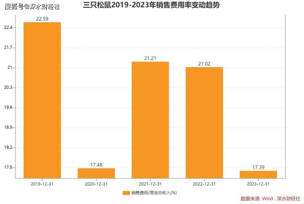 有人说三只松鼠的利润是省出来的,这个并不算虚言。深水财经社观察发现,去年公司销售费用率竟然只有17.39%,为近五年最低水平。去年成本费用率从2022年的25.54%大幅降至21.02%,这一项就能给公司节省几个亿出来,说明公司把更多的成本让利给了消费者,公司经营管理成本大幅压缩。