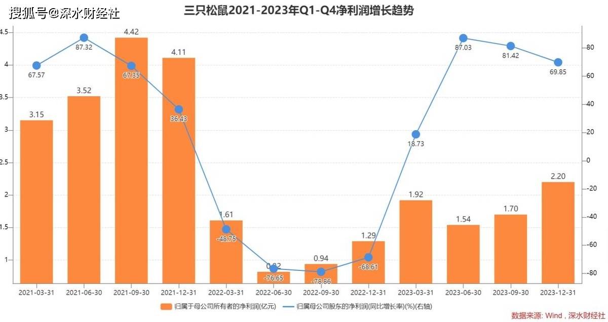 过去一年,三只松鼠共实现营收71.15亿元,同比微降2.45%;归母净利润2.2亿元,同比大增69.85%;扣非净利1.02亿元,同比增长148.72%。