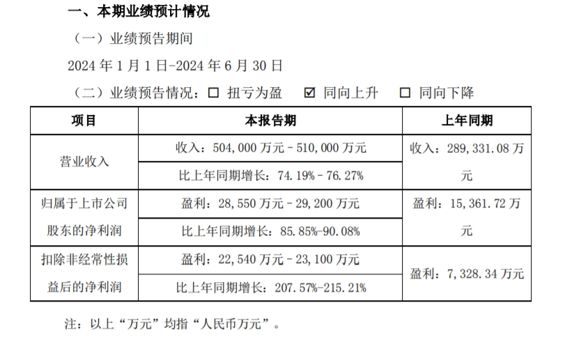 7月16日晚间,三只松鼠(300783.SZ)发布了2024年半年度业绩预告,报告期内,公司营业收入50.40亿—51.00亿元,同比增长74.19%—76.27%;净利润2.855亿—2.920亿元,同比增长85.85%—90.08%。