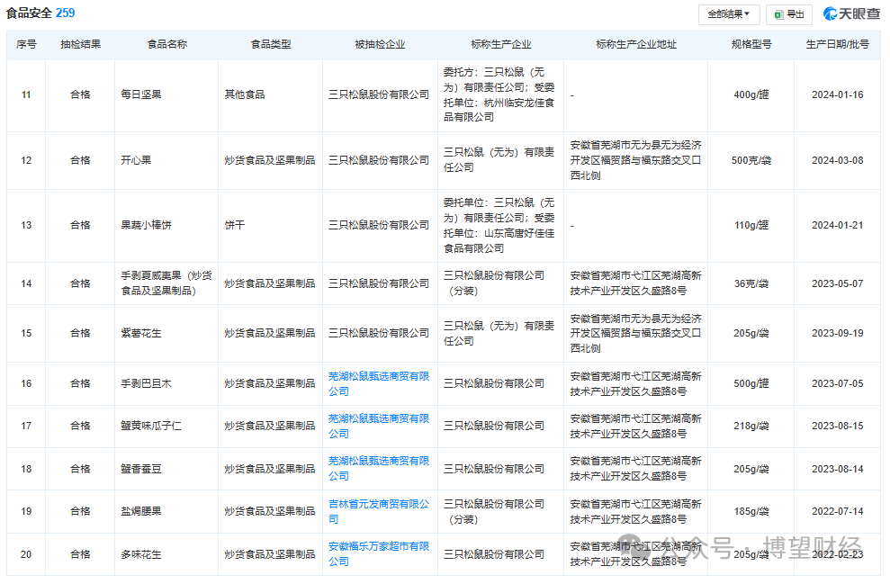 此外,据天眼查显示,三只松鼠涉及食品安全问题达259项,频频陷入“食品致癌物超标”的争议之中。