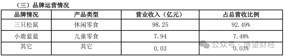 多品牌矩阵初成,但协同效应不足。主品牌“三只松鼠”2024年营收98.25亿元,占绝对主导,通过“高端性价比”策略,抢占下沉市场;子品牌“小鹿蓝蓝”聚焦儿童零食,2024年营收7.94亿元,占营收的比例仅7.48%,其他孵化品牌2024年合计营收仅0.03亿元,尚处市场试水阶段。